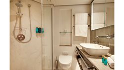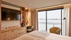 Alle hutten zijn gelegen aan de buitenzijde van het schip, op het Rubin en Diamond dek voorzien van panorama-ramen. Uw luxe hut is uitgerust met een flatscreen-tv, dagelijks gevulde minibar, een kingsize bed of 2 1-persoonsbedden, een Nespresso-machine, schoonheidsproducten van RITUALS® (of vergelijkbaar), kluis, airconditioning en een badkamer met douche, toilet en haardroger. Het Ruby en Diamond Deck zijn met een lift met elkaar verbonden. Naar het Smaragd Deck en Sun Deck zijn trappen met een aantal treden.
